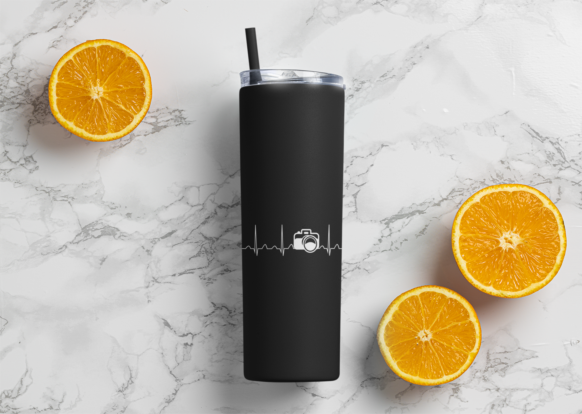 Capture the essence of your passion with our camera lifeline tumbler.