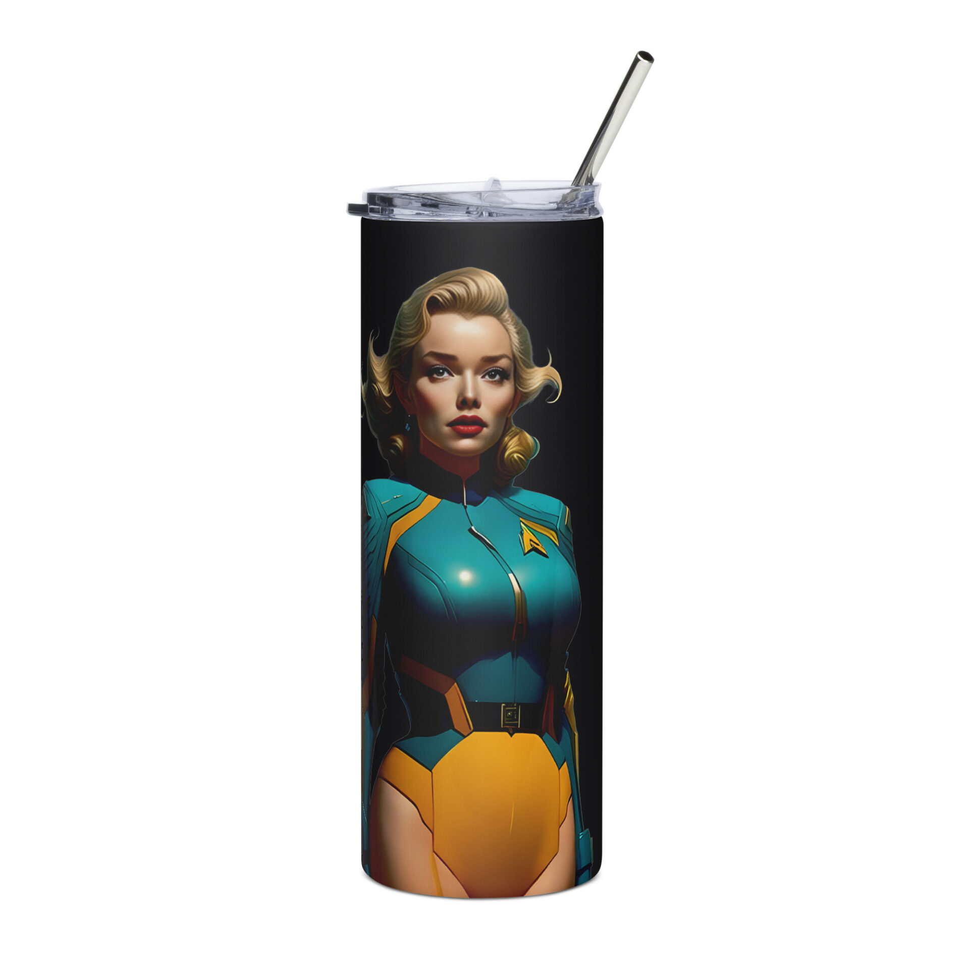 Join her on this intergalactic adventure and embrace the future in style. Get your own Marilyn in Space tumbler today and be part of the cosmic revolution!